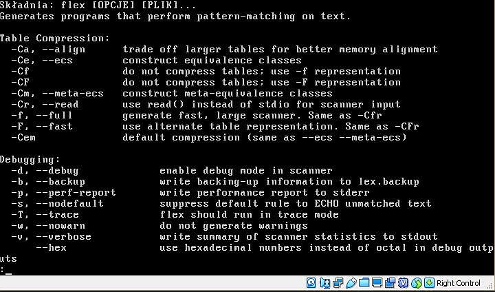 flex - Narzędzie do generowania programów rozpoznających wzorce w tekście. Pozwala na uniwersalne określanie reguł do znajdowania przez dopasowanie likwidująć potrzebę stworzenia do tego celu specjalistycznego programu. flex++ (link do flex) - Rozszerzenie flex służy do generowania kodu i klas C++ Jest to symboliczny link do flexu. lex (link do flex) - Skrypt uruchamiający flex w trybie emulacji lex. |