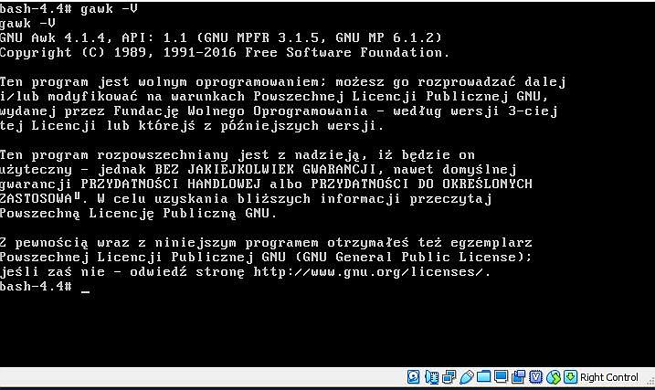 Gawk zawiera programy do manipulowania plikami tekstowymi. AWK to program, którego można użyć do wybrania określonych rekordów w pliku zarchiwizuj i wykonaj na nich operacje. Gawk jest implementacją języka programowania AWK projektu GNU. Jest zgodny z definicją języka w poleceniu POSIX 1003.2 Język i narzędzia standardowe. Ta wersja z kolei oparta jest na opis w języku programowania AWK. Autor: Aho, Kernighan i Weinberger, z dodatkowymi funkcjami zdefiniowanymi w wersji System V. Jest to 4 wersja UNIX awk. Gawk zapewnia również nowsze dodatki awk Bell Labs i niektóre rozszerzenia specyficzne dla GNU. |