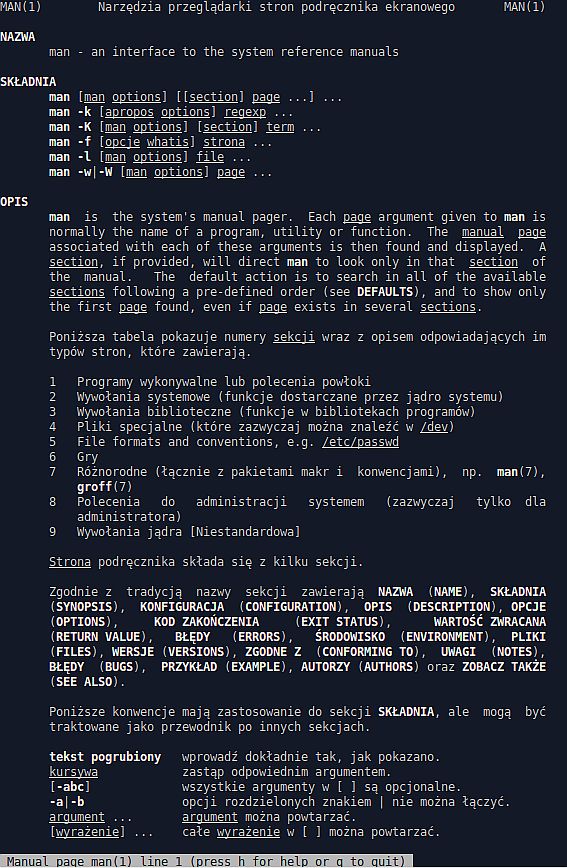 Strony podręcznika są dokumentacją online dla systemu Linux dla funkcji języka programowania C, ważne pliki urządzeń i znaczące pliki konfiguracyjne.